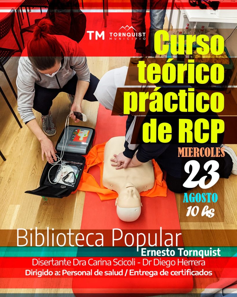 Este miércoles 23 de Agosto a las 10 hs se llevará a cabo el dictado del Curso teórico práctico de RCP en la sede de la Biblioteca Popular Ernesto Tornquist. El curso esta orientado principalmente al personal de salud. Se entregará diploma de asistencia.